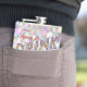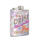 This is a fun and flirty flask that says, "Time to Drink Champagne and Dance on the Table" on an illustrated sparkly colourful background, making it a perfect 21st birthday gift, holiday gift or bachelorette gift, or gift for the bridesmaids.