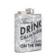This is a fun and flirty flask that says, "time to Drink Champagne and Dance on the Table" on an illustrated sparkly silver background, making it a perfect 21st birthday gift, holiday gift or bachelorette gift.