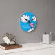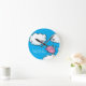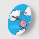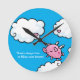 A clock featuring an adorable pink flying pig with little white wings, dancing on clouds in a bright blue sky. The clouds are embellished with hearts. With the words "There's always time to follow your dreams!" but you can customise them if you wish!