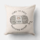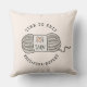 A cute illustrated, time to knit themed throw pillow featuring a ball of yarn. The text reads: time to knit and knit purl repeat. A light pastel peach background. A gift for an avid knitter. A unique gift for a knitter or crafters studio.