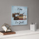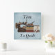 Any time is the right time to quilt. This adorable "Time to Quilt" clock features an image of an antique sewing machine, a stack of fabric and a jar of buttons on a pale blue background; all ready to the right "Time to Quilt".