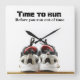 A clock with running shoes ... "time to run before you run out of time" ... all text is customisable ... change, delete, personalise with your own name ... enjoy.