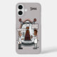 A phone case with a funny cartoon about time travel. The background, image and text can be personalised. Original artwork by DBcartoons.