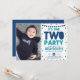 Our Time Two Party 2nd Birthday Invitation sets the tone for a great time! Set off your little ones second birthday with this awesome invite featuring blue and teal colour tones.