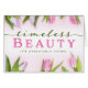 Remind a lady you know how special she is with this elegant calligraphy script lettering style typography design featuring the message, "Timeless Beauty. It's Undeniably Yours". Design is accented with elegant white floral laurels in all four corners of design on dark magenta background.