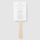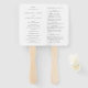 Modern wedding program hand fans featuring a simple design with elegant script and serif fonts.