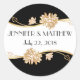 A traditional design for a bride who wants an elegant wedding. This round sticker is black and white with gold floral accent. Perfect cake box label or envelope seal for a Gatsby or Downtown Abbey theme. The font is vintage Art Deco. Easily customisable. You can even change font, font size and colour. Change the white to any colour you wish. Part of a wedding collection in my Zazzle store. Please contact me, if you need help finding it. Best wishes for a great wedding day!