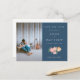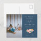 Timeless Blue Floral - QR & Photo Announcement Postcard