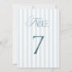 Timeless Blue Stripes Wedding Table Number 7 Sign