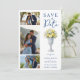 Classic Chalice Vase with Mediterranean Lemons and Flowers 3-Photo Wedding Save the Date Cards with QR Code Back.