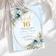 Timeless Dusty Blue Floral Sweet 16th Birthday Invitation