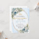 Ideal for classic, modern, garden, or elegant Quinceañera themes, this invitation combines delicate blue hues with warm gold details to achieve a look that feels both sophisticated and youthful. The greenery and eucalyptus bring freshness and balance, while the gold accents add just the right amount of sparkle for a meaningful 15th birthday celebration. Whether you are planning a formal Quinceañera, a traditional fiesta, or an intimate family gathering, this invitation sets a beautiful and memorable tone.