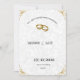This design features a subtle, timeless filigree background pattern in soft grey and white, providing a sophisticated backdrop. The design is highlighted by ornate gold corner accents and a beautiful illustration of two interlocking gold wedding bands at the top. The overall look is refined and luxurious.