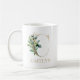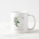 Enjoy your coffee in style with our white coffee mug, featuring a stunning gold monogram letter "C" on both sides. The monogram is elegantly wrapped with a green watercolor floral element, creating a sophisticated look. This mug is perfect for personal use or as a thoughtful gift for someone special. Its unique design adds a touch of luxury to your everyday coffee or tea experience. Perfect for any setting, it combines elegance with practicality.
