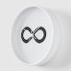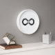 The design of this clock is chraacterised by Infinite Simplicity. It emphasizes the elegance of minimalism and endless possibilities, offering a sense of luxury to any design, with a black infinity symbol against a white background.