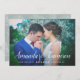 An elegant wedding save the date postcard designed to accommodate your favourite horizontal or landscape orientated full-bleed engagement photo. Your names appear as a white text overlay in classic hand lettered calligraphy script. Personalise with your wedding date and wedding location beneath. Cards reverse to a subtle botanical pattern with space to include your wedding website url or any additional information you choose. You can change the back colour by clicking Customise/Personalise and then selecting new background colour either from the palette or by entering a colour hex code.