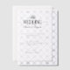 This wedding invitation features a minimalist and elegant design . It uses a combination of serif and cursive script fonts to create a sophisticated, balanced layout, with key details like the event name and couple’s names highlighted in larger, ornate text. The overall style exudes timeless luxury and simplicity.