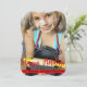 Add your photo and text to this classic style photo Christmas card. The text Merry Christmas in an outlined script font and your name in a red banner near the bottom. Easily upload your photo and adjust if needed using the Customise button to resize and move to create a memorable family Christmas card.