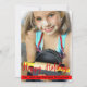 Add your photo and text to this classic style photo Christmas card. The text Merry Christmas in an outlined script font and your name in a red banner near the bottom. Easily upload your photo and adjust if needed using the Customise button to resize and move to create a memorable family Christmas card.