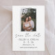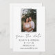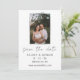 Capture the essence of timeless elegance with our beautifully designed Save the Date card, perfect for modern couples planning their dream wedding. This customisable template features a chic black and white design, with a hand-drawn bow framing your favourite photo, ensuring your special announcement stands out. The stylish script "Save the Date" along the side adds a touch of sophistication, while the simple and clean layout keeps the focus on your love story. Personalise with your names, wedding date, location, and website for a seamless and memorable invitation. Ideal for brides and grooms who appreciate understated elegance and contemporary design.