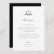 Elegant botanical greenery adorned vintage monogram crest in black, wedding reception thank you card.