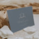 Timeless Vines Monogram Crest, folded wedding photo thank you card. Features, template text lines for your names and personalised message on dusty blue colour background.