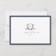 Elegant greenery adorned crest, wedding rsvp card with allergy note. Modern and timeless monogram wedding crest in navy blue with trendy minimalist typography template.
