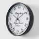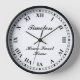Timeless wall clock with classy roman numerals. Elegant roman numeral clock for hom eor office. Create your own unique clock with custom text.Classy time piece with roman numerals, name, date and custom background colour. Make your own chic clock for friends, family, coworker, groom etc. Luxury gift ideas with personalised text. Stylish script typography template. Add your own name and date printed on the dial.