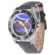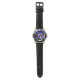 My husband loves the watch, he likes the dial, the graphics, the band, and it keeps perfect time.