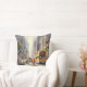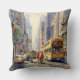 This throw pillow is decorated with a watercolor painting of Times Square New York City