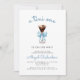 This trendy baby shower invitation features a watercolor illustration of an espresso martini adorned with a blue bow. Above, the words "a tini one" appear in blue casual handwriting script. Personalize the text with the name of the mom-to-be in blue script and the details in charcoal gray sans serif font. The reverse side provides space for diaper raffle, books for baby, and registry details, along with a convenient QR code guests can scan to visit the registry. Ideal for a boy's baby shower.