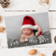 Minimal and modern holiday theme birth announcement photo template card featuring a photo of your newborn on the front with a fun typography text that says "the tiniest noel." You can also add another picture and message on the back.