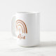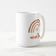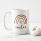 This ceramic mug features a bohemian burnt orange terracotta rainbow with a sun inside and the word 'auntie' written in a handwritten brush font. This coffee cup is the perfect way to announce a new baby in the family and makes a great gift to your favourite aunt. 💜 COLORS ARE EDITABLE! Click 'edit design' to change the colours.