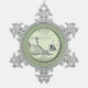 Stylish Christmas snowflake ornament with a tinted version of the U.S. Mint's Maine State 2003 quarter design image (uncirculated reverse), featuring Pemaquid Point Light atop a granite coast and a schooner at sea, on textured green background,