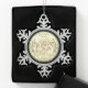 Christmas snowflake ornament features tinted version of the U.S. Mint's Nevada State 2006 quarter design image (uncirculated reverse), featuring a trio of wild stallions, snow capped mountains and the sun on black background
