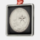 Christmas ornament features tinted version of the U.S. Mint's Texas State 2004 quarter design image (uncirculated reverse), featuring an outline of the State with a star superimposed on the outline and the inscription, The Lone Star State. on black background