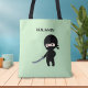 Tiny Angry Ninja Custom Name on Green Tote Bag