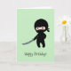 Tiny Angry Ninja on Green Birthday Card