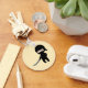 Cute but angry cartoon ninja dressed in black is holding a traditional Japanese katana sword.