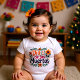 Celebrate tradition with a giggle in this irresistibly festive baby bodysuit! Featuring two cheerful sugar skulls with heart-shaped eyes, surrounded by marigolds and bold florals, this design brings Día de los Muertos joy to your little one’s wardrobe. The vibrant colours pop against soft white cotton, making it perfect for family gatherings, photo ops, or just everyday cuteness. No customisation needed—this body suit is ready to party straight out of the diaper bag.