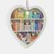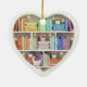 Please note: This is a 2D flat printed graphic print, printed onto an ornament. // - // tiny book shelf shelves, love to read books, rainbow colourful multicolor bookshelf,heart shaped multicolored bookshelves, i love to read,reading love reader,writer reader librarian bookworm,bookaholic stories bibliophile,white pet white cat, english literature lit major