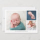 This stylish and elegant 2-sided photo birth announcement card features four (4) photos (front & back) of your newborn baby boy, custom text that can be personalised, and typography text that says "Tiny But Mighty." Customise this product by adding your newborn baby's name, pictures, birth record, and the parents' names.