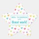 Colourful crayon-drawn hearts in pink, blue, red, yellow, green and orange are the background for this compliment sticker from teacher or parent. You can customise the text and perhaps write "nice job" or "thank you" or "you got this" or whatever works in your environment.