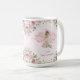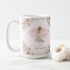 Serve up some hot cocoa or other favourite beverage to your own "tiny dancer" with this pretty mug that features a young girl tying her ballet shoes. The background depicts a larger set of ballet slippers and a floral design in all four corners. Update the text at the bottom, prior to placing into your shopping cart.