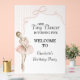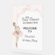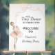 A charming acrylic welcome party sign featuring soft watercolor pink stripes, coquette bows, and an adorable ballerina. Perfect for a Tiny Dancer birthday celebration, this elegant sign sets the tone for a sweet, ballet-inspired party from the moment guests arrive.