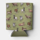 This can cooler features a herd of tiny goats in all different colours on a muted green background.