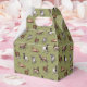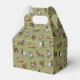 This favour box features a herd of tiny goats in all different colours on a muted green background.