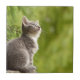 Tiny Grey and white Kitten Peers up to the sky Tile