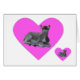 Cute little grey donkey foal lying down in a big pink heart, image is repeated. Card is blank for your own message.