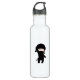 Happy cartoon ninja dressed in black with arm raised in waving. Traditional Japanese sword katana can be seen attached over his shoulder.